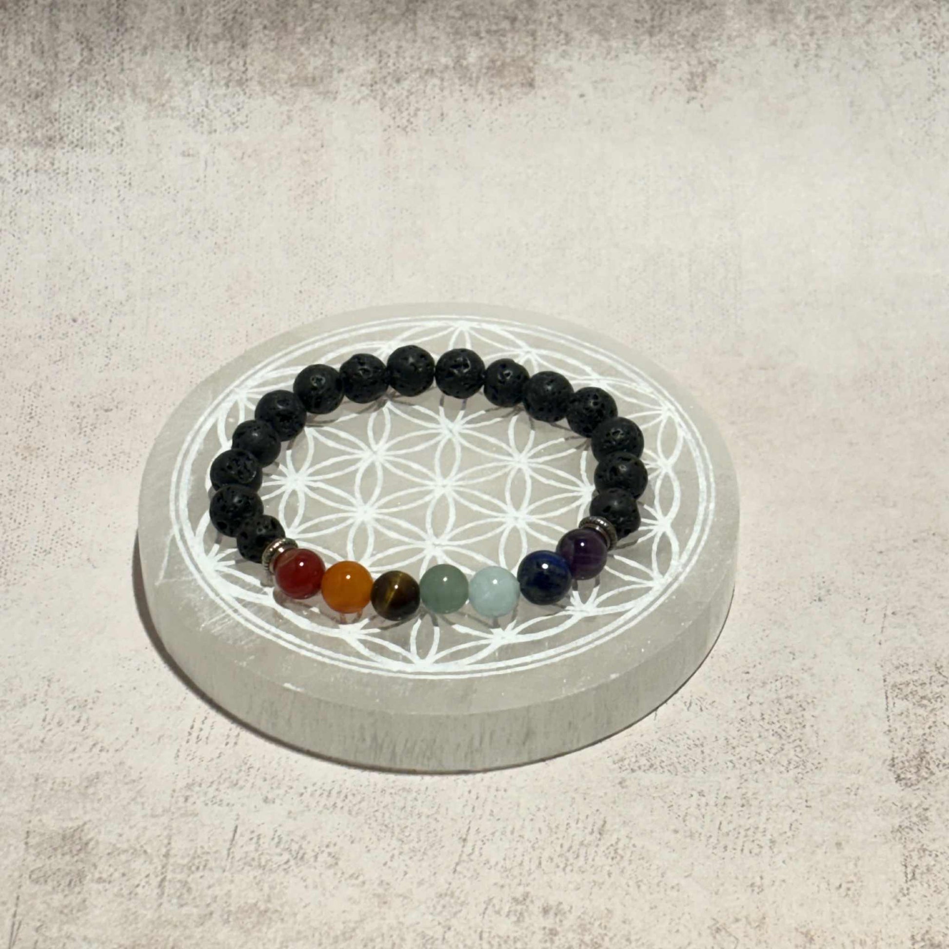Le Bracelet 7 Chakras Lave associe les pierres d’équilibrage aux pierres de lave, connues pour leur ancrage et leur énergie brute. La pierre de lave apporte stabilité, courage et transformation intérieure tout en permettant de diffuser des huiles essentielles. Idéal pour rester centré(e) tout au long de la journée.