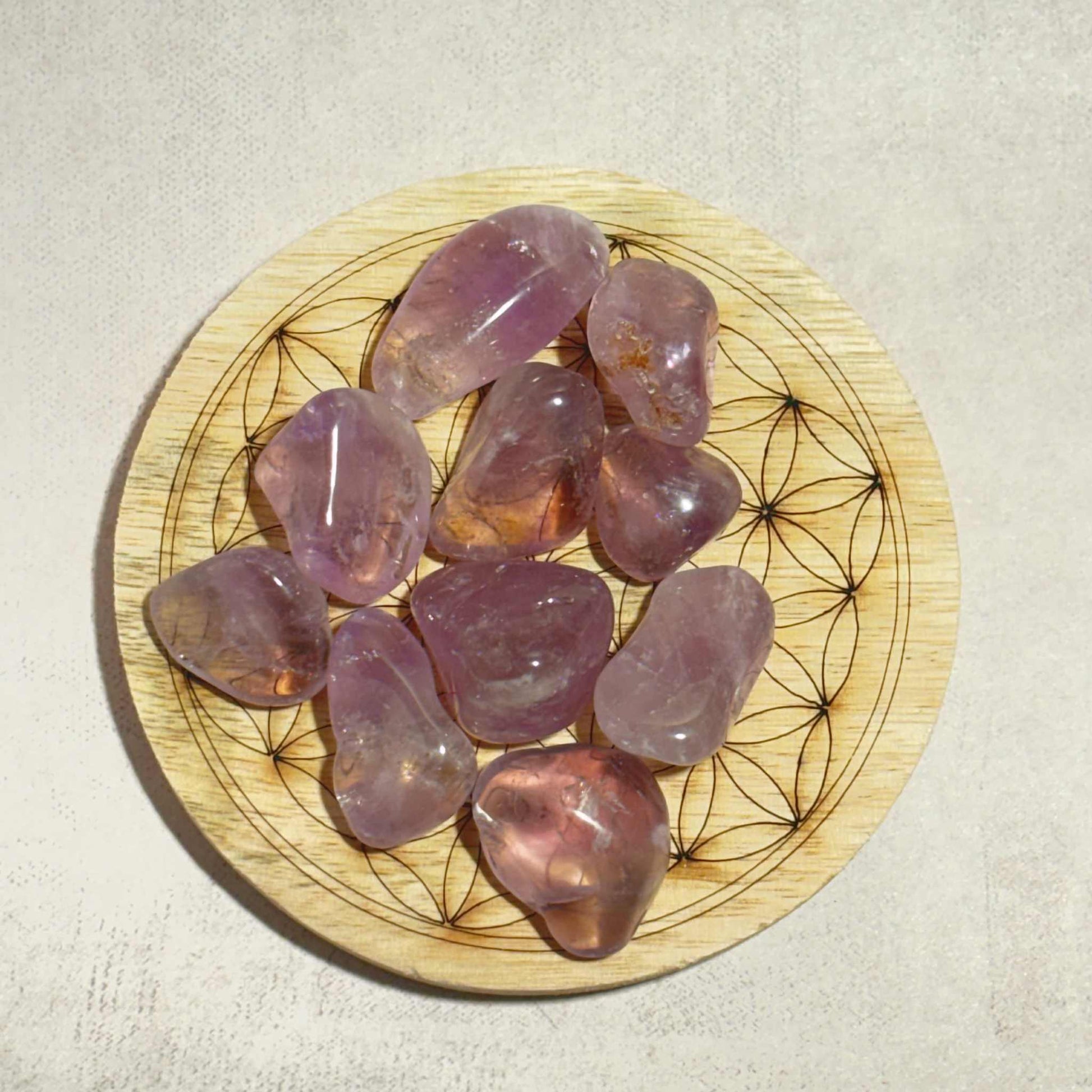 Chaque pierre roulée est unique, polie avec soin pour révéler ses magnifiques nuances violettes. Le poids peut varier de 6g a 13g selon la pierre choisie par mes soins.